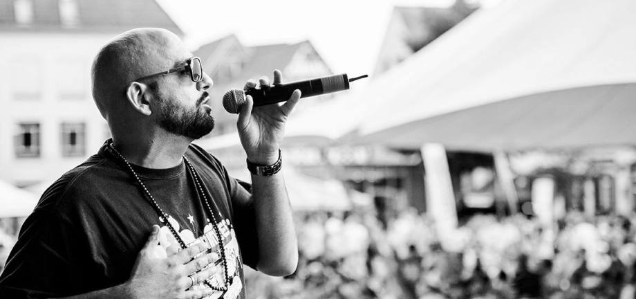 Sie zeigt den Sieg des Offenburger HipHop-Künstlers beim Sängerwettstreit um einen Song für Mönchengladbach.